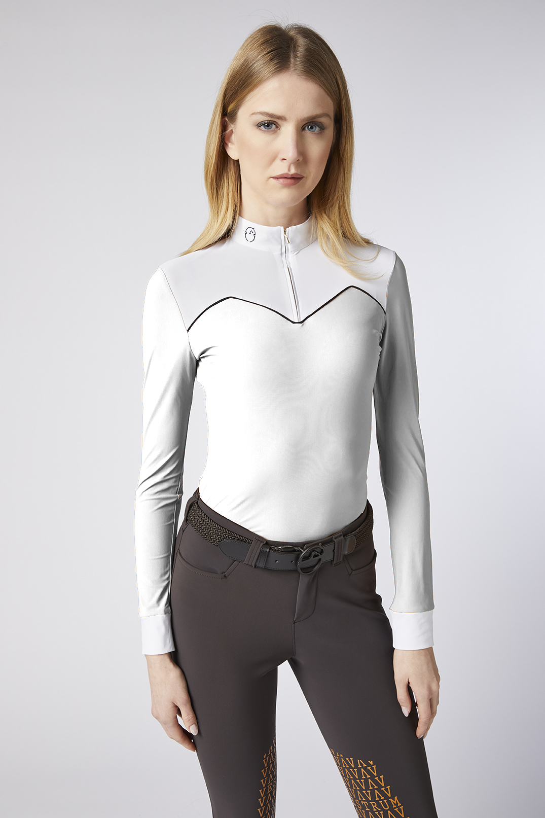 Colore bianco unito, interrotto solo da un elegante piping nero che dona un tocco ricercato e femminile a questo capo.