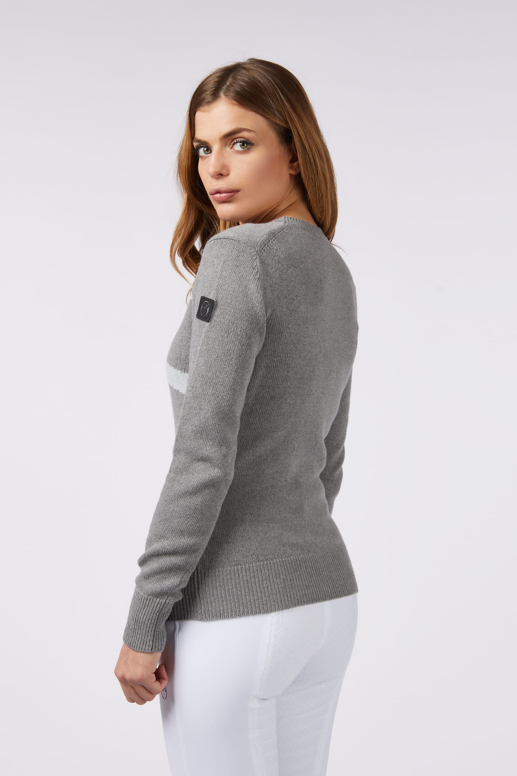 Il maglione è impreziosito da una decorazione intarsiata composta da elementi equestri.