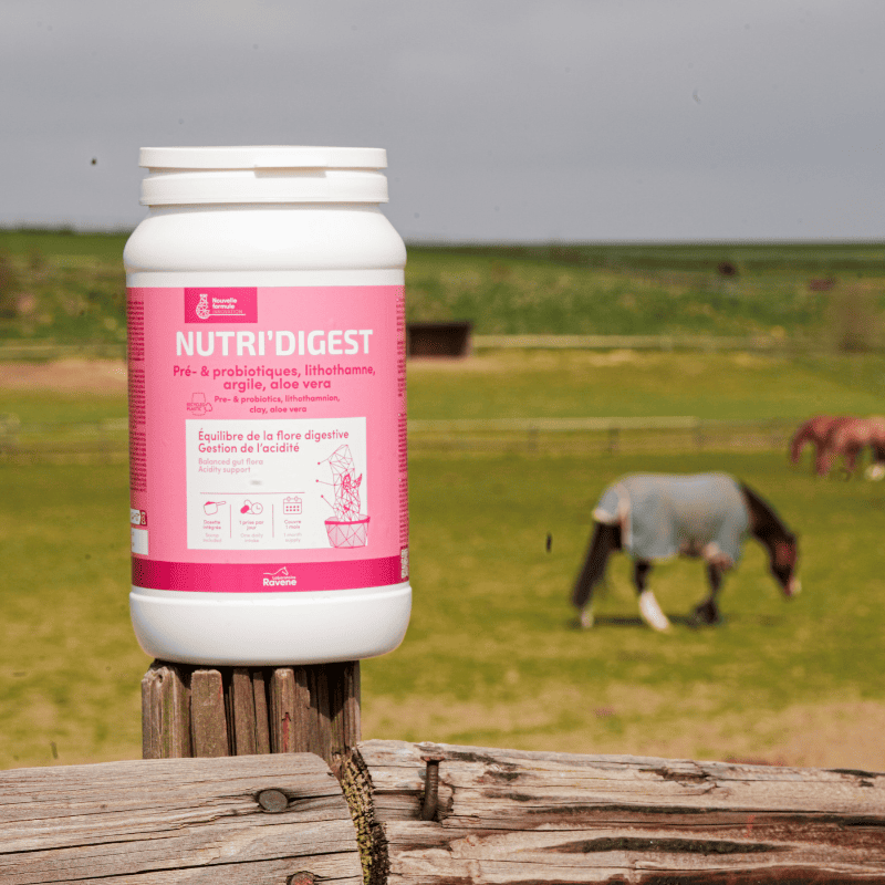 NUTRI’DIGEST sostiene il vostro cavallo in questi momenti grazie a una formula delicata ed efficace: pre- e probiotici per bilanciare la flora, complesso di argilla e piante per lenire e proteggere garantendo al contempo una gestione dell’acidità gastrica.